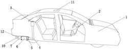 所述防护机构(3)包括有防护箱(31),所述防护箱(31)的表面与汽车本体(1)的内部固定连接,所述防护箱(31)内部的底壁固定连接有电机组(32),所述电机组(32)的输出端固定连接有主动锥齿轮(33),所述主动锥齿轮(33)的轴心处固定连接有蜗杆(34),所述防护箱(31)内部的底壁远离电机组(32)的左侧固定连接有支撑板(35),所述支撑板(35)的顶部固定连接有防护弹簧(36),所述支撑板(35)的表面转动连接有转动杆(37),所述转动杆(37)的表面固定连接有涡轮(38),所述主动锥齿轮(33)的表面设置有出气装置(9),所述涡轮(38)的表面设置有调节装置(8);