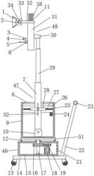 所述第二传动组件(47)包括有连接槽(8)、安装箱(9)、第一安装架(10)、第一转动杆(7)、第二伺服电机(24)、安装槽(25)、第一传动盒(26)、第二丝杆(27)、第二安装架(28)、第一连接块(35)、第一锥齿轮(36)、滑槽(52)、滑杆(41)和第二锥齿轮(37),所述转动板(51)的顶部固定安装有安装箱(9),所述安装箱(9)内壁的底部固定安装有第一安装架(10),所述第一安装架(10)的内壁之间转动有第一转动杆(7),所述安装箱(9)内壁的一侧固定安装有第一传动盒(26),所述第一传动盒(26)的内壁之间转动连接有第二丝杆(27),所述第二丝杆(27)的外侧固定安装有第一锥齿轮(36),所述第一传动盒(26)底部且靠近第一锥齿轮(36)的一侧固定安装有第二伺服电机(24),所述第二伺服电机(24)的输出端延伸至第一传动盒(26)内部且固定安装有第二锥齿轮(37),所述第二锥齿轮(37)的外侧与第一锥齿轮(36)啮合连接,所述第二丝杆(27)的外侧螺纹连接有第一连接块(35),所述第一传动盒(26)的外侧开设有安装槽(25),所述第一连接块(35)的外侧与安装槽(25)滑动连接,所述第一连接块(35)的一端延伸至第一传动盒(26)外侧且固定安装有第二安装架(28),所述第二安装架(28)的内壁之间固定安装有滑杆(41),所述第一转动杆(7)的内部开设有滑槽(52),所述滑杆(41)的外侧与滑槽(52)滑动连接,所述安装箱(9)的顶部开设有连接槽(8),所述第一转动杆(7)的外侧与连接槽(8)滑动连接,所述第一转动杆(7)的顶部通过连接槽(8)延伸至安装箱(9)的上方;