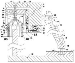 1.一种树木砍伐起重机设备,包括地面,特征在于:所述地面左上端固定设有树干,所述地面上侧设有固定机构,所述固定机构包括嵌设于基座内部的绕绳电机,所述绕绳电机控制有绕绳电机轴,所述绕绳电机轴前端固定设有绕绳轮,所述绕绳轮外侧缠绕有拉绳,所述拉绳左端固定设有配合块,所述配合块与配合槽配合限制绳扣的角度,所述配合槽开设于所述基座内部,所述配合块左端固定设有所述绳扣,所述绳扣内部嵌设有压感器,所述压感器与活扣杆相接触,所述压感器可用于检测所述活扣杆的压力,所述活扣杆与活扣轴转动连接,所述活扣轴还与绳扣转动连接,所述活扣轴外侧设有活扣簧,所述活扣簧两端分别与所述绳扣与所述活扣杆固定连接,所述绳扣上侧设有侧端底座,所述侧端底座左端固定设有转动底座,所述侧端底座内部嵌设有夹持液压缸,所述夹持液压缸控制有夹持液压杆,所述夹持液压杆下端固定设有伸缩底座,所述伸缩底座内部裝夹持电机,所述夹持电机控制有夹持电机轴,所述夹持电机轴下端固定设有夹持底座,所述夹持底座内部开设有夹持滑槽,所述夹持滑槽中部固定设有夹持电磁铁,所述夹持电磁铁用于吸引两个夹持铁滑块,两个夹持铁滑块与所述夹持滑槽滑动连接,所述夹持铁滑块与所述夹持电磁铁之间设有夹持压簧,所述夹持铁滑块下端固定设有夹持块,所述夹持块用于夹持所述绳扣,所述固定机构用于固定所述绳扣;