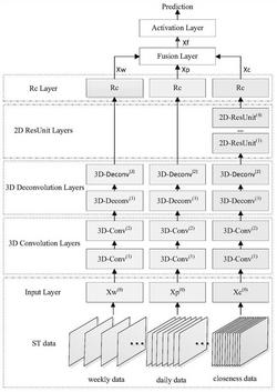 4.如权利要求2所述的一种基于3D反卷积的出行需求预测方法,其特征在于,所述构建预测模型的步骤,还包括:步骤4.2:对临近依赖性的残差单元输出进行重新校准,对日常依赖性和周期依赖性的