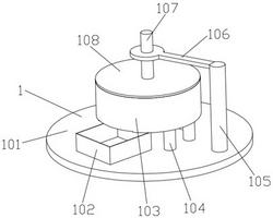 3.根据权利要求1所述的一种离心芥末花生包裹转动系统,其特征在于:所述包裹盒(103)的顶端搭接有盖板(108),盖板(108)上表面的中心固定连接有滑动柱(107),滑动柱(107)的外表面滑动连接有滑动架(106),滑动架(106)与底板(101)通过支撑柱(105)固定连接。