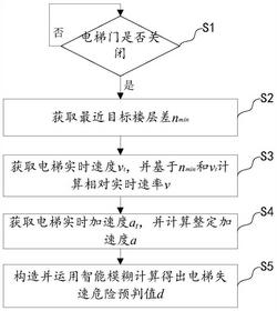 5.根据权利要求1所述的防止电梯失速坠落的在线预判监测方法,其特征在于,所述构造并运用智能模糊计算得出电梯失速危险预判值d,之后包括:输出电梯失速危险预判值d的计算结果,并且当d的数值超过预设值时判断结果为危险,系统发出报警信息。6.根据权利要求5所述的防止电梯失速坠落的在线预判监测方法,其特征在于,所述系统发出报警信息,具体包括:梯内控制器向每层的求助控制器发送求救信号,求助控制器向层内的每个住户发送求助指令:当任一住户接收求助指令时,梯内控制器接收住户反馈,通过梯内播音设备播放救援安抚广播;当设定时间内,无用户接收求助指令时,梯内控制器停止发送求救信号。7.根据权利要求6所述的防止电梯失速坠落的在线预判监测方法,其特征在于,所述求助控制器向层内的每个住户发送求助指令,具体包括:求助控制器向层内每个住户内安装的扩音求助设备发送语音求助指令,当住户接收求助指令时按下扩音求助设备的接收按钮。