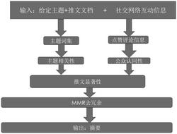 5)将公众认同度与主题相关性进行综合,得到最终的推文显著性,表示为:RankScore=ω·SST+(1‑ω)·R,SST为一个句子到主题T的相关性度量,R为公众认同度,ω为超参数;