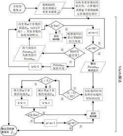 S3,通过参数选择算法,按照参数优化顺序依次确定每个参数的取值选项,该算法包括两个循环,在第一个循环中,参数按相关性顺序依次进行迭代,每个参数又根据其候选取值进行迭代,下一个参数取值的确定过程在上一个参数最优取值的基础上进行,最终获得一组最优参数组合;第二个循环在第一个循环的基础上加入编码时间限制,依次进行迭代,基于同一个参数的取值越小,则编码时间越短的规律,在第一个循环得到的最优参数组合的基础上,通过实际编码时间与目标编码时间对比来确定增大或减小参数取值,比较不同参数调整后的RDTscore,从而找出综合性能最好的参数作为本轮参数调整的对象,其他参数保持不变;更新参数组合,继续执行第二个循环直到在误差允许的范围内达到目标复杂度;