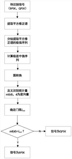 1.基于极差中值图域特征的BPSK及QPSK信号调制识别方法,其特征在于,包括如下步骤: