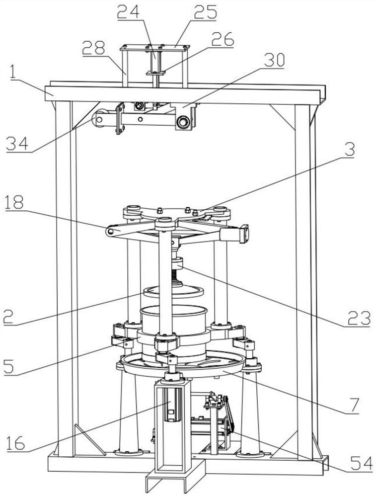 2.根据权利要求1所述的一种全自动乌龙茶揉捻条状成型一体机,其特征在于:所述的加压机构还包括支撑顶板(3)、支撑立柱(4)和压力传感器(23);多根支撑立柱(4)的底端均与揉筒框(5)固定,顶端均与支撑顶板(3)固定;加压动力元件安装在支撑顶板(3)的底面;