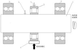 步骤a:由支撑轴(1)带动测试轴承(3)内圈旋转,通过加装机构(4)对测试轴承(3)外圈施加径向载荷Fr,并通过力传感器读出确定加载数值,通过两个位置检测部件分别测量靠近测试轴承(3)位置的支撑轴(1)的径向位移量δs和测试轴承(3)外圈的径向位移量δr,得到测试轴承(3)的相对位移量为: