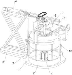 滤网(610),底框(2)内部上侧滑动式设有滤网(610),滤网(610)与第二转动轴(61)转动并滑动式连接,拉绳(69)两端均绕过同侧的滑动轮(68)与滤网(610)连接;