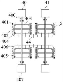 5.根据权利要求2所述的一种大距离多绳牵引提升系统,其特征在于:导向轮系包括呈前后布置的一层导向轮、二层导向轮、三层导向轮和四层导向轮,各层导向轮的高度位置自前到后依次降低,每层导向轮各自均包括有并列设置的两个导向轮;