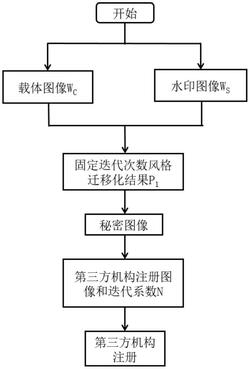 1.一种基于图像风格迁移化的零水印版权保护方法,其特征在于,具体按照以下步骤实施:步骤1、确定内容图片WC和风格图片WS,通过设计风格迁移化网络,并以与水印注册的时间戳有关的迭代次数N进行训练,将WC风格化为带有风格图片WS的风格的秘密图像P1,完成零水印的构造过程;