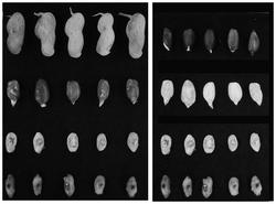 (4)接菌:浸泡后的花生仁子叶整齐摆放于垫有吸水纸并且加水保湿的托盘中,水量没过供试花生接种材料的一半;对每个花生仁子叶表面进行创伤,将菌丝面贴于创伤处;托盘盖上保鲜膜进行保湿,置于25℃黑暗培养;