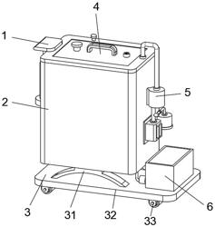 所述箱体(2)的下表面连接有底座机构(3),所述底座机构(3)包括板簧(31)、底座(32)和锁止万向轮(33),所述箱体(2)的下方设有底座(32),底座(32)通过多个板簧(31)与箱体(2)连接,且底座(32)下表面的边角处安装有锁止万向轮(33)。