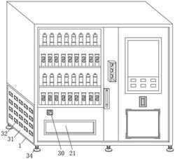 所述过滤箱(8)的左侧面通过铰链与门板(24)的正面活动连接,所述门板(24)的外表面与过滤箱(8)的内壁搭接,所述抗震气垫(6)的外表面固定连接有两个支撑架(25),且两个支撑架(25)的下表面均与售货机(1)内壁的下表面固定连接;所述抗震气垫(6)的上表面开设有若干个通孔(26),所述密封筒(14)内壁的右侧面开设有气孔(17),所述气孔(17)内设置有硅胶块(33),所述硅胶块(33)的左侧面开设有排气槽;