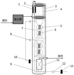 5.根据权利要求1所述的一种反硝化脱氮除磷塔式设备,其特征在于,所述的阳极室(3)底部分布有经过驯化的亚硝酸盐菌颗粒污泥。