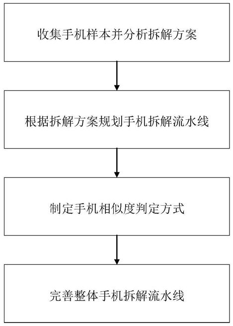 1.一种多类型手机智能化分类拆解方法,其特征在于:包括以下步骤:收集手机样本并分析拆解方案、根据拆解方案规划手机拆解流水线、制定手机相似度判定方式、完善整体手机拆解流水线;