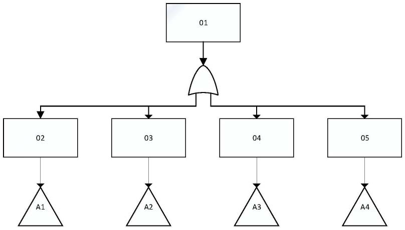 假设每个Xj全部取1时,则 表现了当全部底事件发生时,顶事件必定会发生,将这种结构称为与门结构故障树;