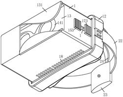 1.一种基于5G云渲染的VR眼镜,包括壳体(1)和固定带(2),固定带(2)安装在壳体(1)外侧;其特征在于:所述壳体(1)靠近固定带(2)一端开设有观察口(11);所述观察口(11)外侧安装有护垫(12);所述壳体(1)远离固定带(2)一端开设有手机腔(13);所述手机腔(13)底部开设有VR眼镜槽(14);所述VR眼镜槽(14)固定安装有VR眼镜架(141);所述VR眼镜架(141)内固定安装有透镜(142);所述透镜(142)右侧设有一号镜架(15),一号镜架(15)内固定安装有一号镜片(151),一号镜片(151)为凸透镜;所述一号镜架(15)两侧安装有一号滑块(152);所述壳体(1)两侧开设有滑槽(16);所述一号滑块(152)远离一号镜架(15)一端伸出滑槽(16),一号滑块(152)与滑槽(16)滑动连接;所述一号滑块(152)远离一号镜架(15)一端固连有一号调节块(153),一号调节块(153)位于壳体(1)外侧;所述一号镜架(15)右侧设有二号镜架(17),二号镜架(17)内固定安装有二号镜片(171),二号镜片(171)为凹透镜;