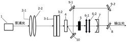 泵浦源(1)、第一消色差凸透镜(2‑1)、第二消色差凸透镜(2‑2)、第一Tm,Ho:LLF晶体(3‑1)、第二Tm,Ho:LLF晶体(3‑2)、Cr:ZnS晶体(4)、F‑P标准具(5)、第一2μm激光λ/4波片(6‑1)、第二2μm激光λ/4波片(6‑2)、平凹镜(7)、分光片(8)、第一反射平面镜(9‑1)、第二反射平面镜(9‑2)、反射球面镜(10);