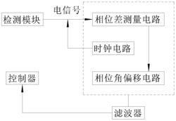 在相位差测量电路的作用下对采取的晶圆位置在晶圆机台(1)中的物理量进行标记,将晶圆在晶圆机台(1)中的位置差异转化为晶圆之间的位置差异,使滤波器终端(2)中反馈的波形仅需通过相位数据被控制器所识别分析,避免晶圆在晶圆机台(1)中的方位处于其存放位置误差要求内时而出现额外的处理量,同时滤波器终端(2)在不同工位中通过时钟电路标记的相位角,能够反映出晶圆在晶圆机台(1)流转方向上的偏移,通过与设定波形的相位角进行拟合分析,获得晶圆机台(1)中每个工位对流转晶圆位置造成的偏移量,继而在进行晶圆机台(1)的维护作业中进行调整,保持晶圆机台(1)每个工位间的作业精度,进而在控制器维持对滤波信号的处理速度的状态下,确保晶圆机台(1)中晶圆生产流转的速度。