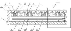 1.一种用于便携式计算机的安全外壳,其特征在于:包括L型板(1)和第一横板(2),L型板(1)竖直板底端与第一横板(2)左端通过第一铰链(11)连接,L型板(1)水平板底面开设第一凹槽(3),第一凹槽(3)的截面为“凸”字型,第一凹槽(3)内配合安装第二横板(4),第二横板(4)截面为“凸”字型,第二横板(4)可在第一凹槽(3)内滑动,第二横板(4)底面矩阵设置四个收纳式限位装置,四个限位装置能够将平板电脑固定在第二横板(4)上,第一横板(2)顶面前后两侧均设置屏幕开启装置,当本装置内放入翻盖笔记本时,转动第一横板(2),通过屏幕开启装置能够将翻盖笔记本打开,其特征在于:L型板(1)顶面开设数个均布的第一散热孔(5),第二横板(2)顶面对应第一散热孔(5)的位置处开设第二散热孔(6),第二横板(2)顶面对应第二散热孔(6)的一侧均设置封堵装置,使用时第一散热孔(5)与第二散热孔(6)对齐进行散热,当不需要使用的时候移动第二横板(2)能够使封堵装置将第一散热孔(5)封堵住。