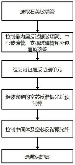 S3、制备中间体以及拉制空芯反谐振光纤:将步骤S2组装好的预制棒固定到拉丝塔中控制拉制速度得到中间体;接着控制拉制速度将中间体拉制为空芯反谐振光纤;