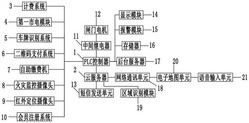 1.一种基于电子地图的无人值守停车收费系统,包括PLC控制器(1)、云服务器(2)、计费系统(3)、第一市电模块(4)、车牌识别系统(5)、二维码支付系统(6)、自助缴费机(7)、红外定位摄像头(9)、会员注册系统(10)、中间继电器(11)、闸门电机(12)、短信发送单元(13)、显示模块(14)、存储器(16)、后台服务器(17)、网络通讯单元(18)、区域识别模块(19)、电子地图单元(20)和语音输入单元(21),其特征在于:所述PLC控制器(1)与云服务器(2)、计费系统(3)、第一市电模块(4)、车牌识别系统(5)、二维码支付系统(6)、自助缴费机(7)、红外定位摄像头(9)、会员注册系统(10)、中间继电器(11)、短信发送单元(13)、显示模块(14)、存储器(16)、后台服务器(17)、网络通讯单元(18)和区域识别模块(19)信号连接,所述中间继电器(11)信号连接闸门电机(12),所述网络通讯单元(18)信号连接电子地图单元(20),所述电子地图单元(20)信号连接语音输入单元(21);