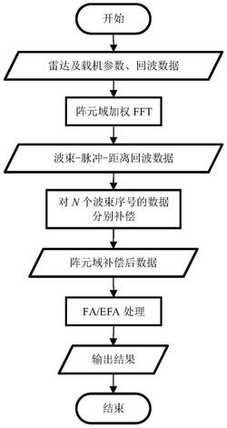 步骤5.1,根据步骤4得到的归一化空间频率值 和步骤2得到的阵元FFT加权系数矢量β,确定第l个距离单元的N×K维阵元‑脉冲维数据的阵元FFT加权变换矩阵Fl,其表达式为:步骤5.2,使用阵元FFT加权变换矩阵Fl对第l个距离单元的阵元‑脉冲维数据Xl进行阵元域加权FFT变换,得到第l个距离单元波束‑脉冲维回波数据Yl,表达式为:H