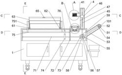 第六轴(77),平行设置在第五轴(75)的一侧,第六轴(77)的两端分别与箱体(1)的内壁以及支撑板(72)的侧壁转动连接,第六轴(77)上套装固定有第三齿轮(78),第三齿轮(78)与所述第二齿轮(76)啮合;