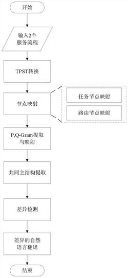 1.服务流程间差异检测与自然语言翻译方法,该方法包括以下步骤: