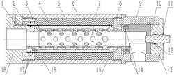 1.一种基于压电薄膜俘能频率可调的压电俘能器,其特征在于:导线、密封套、导流管、弹性缓冲套、壳体、压电薄膜、阻流管、后端盖、旋转轴套、旋钮底座、旋钮、格莱圈、O形圈、固定销、前端盖等;前端盖其内部结构包括引线孔、密封套放置槽、固定销放置孔、O形圈槽;密封套为圆环形,其结构包括电极引出腔和两个O形圈槽;弹性缓冲套和壳体均为圆筒形状,弹性缓冲套为高弹性的软材质,紧贴于壳体的内壁上;压电薄膜放置在弹性缓冲套的内部,引出电极的一端用密封套固定,另一端用弹性缓冲套和导流管压紧,防止滑动。