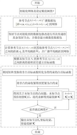 步骤4:将非凸问题转化为凸问题迭代求解确定未知节点的位置:通过迭代优化求解关于未知节点位置变量的凸问题,从而确定未知节点位置;