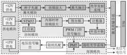 1.一种新型激光雷达探测时序控制系统,其特征在于时序控制系统由激光模块、控制模块、探测模块和供电模块组成;通过上位机编写程序指令,写入控制模块的STM32控制器,使得STM32控制器发出具有特定时序的脉冲触发信号作为PMT的门控信号,进而控制探测模块中门控PMT的工作状态,同时STM32也控制激光模块的激光器启停,完成时序同步。