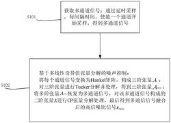 S102:基于多线性奇异值张量分解的噪声抑制:将每个通道信号变换为Hankel矩阵,构成三阶张量对三阶张量 进行Tucker分解并处理,得到三阶张量将三阶张量 恢复为多通道信号,对该多通道信号构成的二阶张量X进行CP张量分解处理,最后得到多通信信号融合后的高信噪比信号xnew。