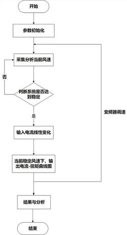 3)、通过电流控制器控制磁粉制动器输入电流的大小,并记录磁粉制动器的输出扭矩值:通过电流控制器线性调节磁粉制动器输入电流的大小,具体为:使得磁粉制动器输入电流值从零上升到垂直轴风轮停止转动之后再降到零值;记录每个输入电流值数据以及其对应的磁粉制动器的输出扭矩值数据;