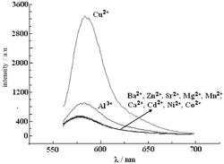 9.一种如权利要求1所述糠偶酰缩罗丹明B酰腙在检测铜离子中的应用。