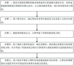 1.一种基于火灾导致楼盖、屋盖角柱失效后极限载荷的计算方法,其特征在于,包括如下步骤:步骤一、假设失效角柱周围的板顶部表面的主要裂缝呈弧形分布,对所述板顶部根据裂缝进行圆弧状有限元划分,定义板的破坏准则,进行相邻梁的受力假设;