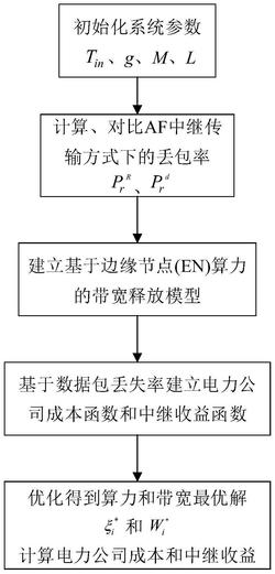 S6、结合优化算法得到算力和带宽的最优分配解ξi、Wi ,并进一步得到电力公司的成本和中继的收益。