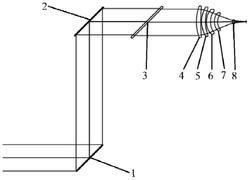 1.一种无人机激光通信装置的通信接收光学系统,其特征在于:包括伺服摆镜(1)、反射镜(2)、分光片(3)和透镜组,所述的伺服摆镜(1)和反射镜(2)平行设置,所述的反射镜(2)位于伺服摆镜(1)的上方,且伺服摆镜(1)和反射镜(2)位于同一竖直平面内,所述的反射镜(2)和分光片(3)平行布置,且所述反射镜(2)和分光片(3)位于同一水平平面内,所述的透镜组位于分光片(3)的透射方向,所述的透镜组包括沿光线入射方向同光轴依次排布的第一透镜(4)、第二透镜(5)、第三透镜(6)、第四透镜(7)和第五透镜(8),分光片(3)的透射光轴与透镜组的光轴同轴布置,所述的第一透镜(4)和第二透镜(5)均为正透镜,所述的第三透镜(6)、第四透镜(7)和第五透镜(8)均为负透镜,所述光学系统采用入瞳前置布置,所述入瞳位于伺服摆镜(1)处。