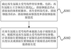 步骤2:在再生混凝土受弯构件承载能力处于极限状态时,根据所述再生混凝土受弯构件特征参数,计算搭接位置钢筋处于屈服状态时的钢筋搭接长度Lsy以及或搭接位置钢筋处于极限状态时的钢筋搭接长度Lsu。