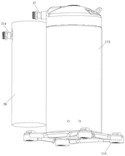 所述动力机构(1)包括第一电动机(11),所述第一电动机(11)与第一传动轴(12)固定连接,所述第一传动轴(12)与第二传动轴(13)一端铰接,所述第二传动轴(13)一端与动盘(15)固定连接,所述动盘(15)上端与静盘(16)紧密贴合,所述静盘(16)一端设有导气管(14),所述导气管(14)一端与壳体(113)固定连接,所述静盘(16)侧壁与壳体(113)固定连接,所述静盘(16)上端与第一出气管(17)固定连接,所述第一出气管(17)套设于隔板(18)内部,所述第一出气管(17)内部侧壁与第一橡胶圈(19)固定连接,所述第一橡胶圈(19)上端设有第一橡胶球(110),所述第一橡胶球(110)与第一压缩弹簧(111)下端固定连接,所述第一压缩弹簧(111)上端与第一支撑体(112)固定连接,所述第一支撑体(112)侧壁与第一出气管(17)固定连接,所述第一出气管(17)一端侧壁与壳体(113)固定连接,所述壳体(113)下端与支脚(114)固定连接;