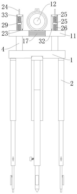 1.一种煤矿区开采沉陷区测绘水准仪,包括支座(1),所述支座(1)的底部铰接有多个支腿(2),其特征在于:所述支座(1)的顶部设有抬升机构,所述抬升机构和支座(1)上共同设有安装机构,所述抬升机构的顶部安装有水准仪(12);