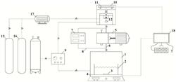 甲烷吸附测试过程为:增压泵将高压甲烷气体钢瓶中的甲烷气体输入至样品仓中,使得样品盘中的样品颗粒吸附高压甲烷气体,数据采集器记录样品仓中甲烷气体的多组压力值以及与压力值对应的磁悬浮天平的示数;
