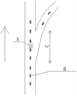 2.根据权利要求1所述的一种无人驾驶车辆驶出道路的控制方法,其特征在于,当无人驾驶将驶出意图发送至道路管理系统后,系统根据定位模块、速度传感器和加速度传感器所测数据计算所述无人驾驶车辆运行至预期分离点所需的时间,公式如下:其中,t是车辆从发出驶出信号位置到达预期分离点所需的时间,L是车辆发出驶出信号位置至预期分离点之间的距离,V是车辆当前行驶速度,a是车辆加速度。