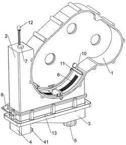 1.一种新能源汽车变速箱壳体,包括有变速箱壳体(1),其特征在于,还包括有:上油底壳(2),变速箱壳体(1)上通过紧固件连接的方式连接有上油底壳(2),上油底壳(2)底部通过紧固件连接的方式连接有下油底壳(3);铁屑清理装置,下油底壳(3)下方左部固定安装有铁屑清理装置,铁屑清理装置用于将收集的铁屑清理;出油螺母(5),下油底壳(3)底部通过螺纹配合的方式连接有出油螺母(5);滤网(6),变速箱壳体(1)底部对称设置有滤网(6),滤网(6)用于对油液进行过滤;加油盖(7),上油底壳(2)顶部卡套式连接有加油盖(7),加油盖(7)便于工作人员朝上油底壳(2)内添加油液;铁屑去除机构(8),下油底壳(3)上设置有铁屑去除机构(8),铁屑去除机构(8)用于将内部铁屑去除;开合机构(9),开合机构(9)滑动式连接于下油底壳(3)内,开合机构(9)用于将铁屑清理装置打开;油泥刮除机构(10),油泥刮除机构(10)设于变速箱壳体(1)内,油泥刮除机构(10)用于将变速箱壳体(1)内底部的油泥刮除;