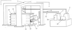 A3,将塑料布移除并将可伸缩加载板(18)放置在填料(19)顶面,采用推车或者叉车将模型箱系统放置在反力架(1)内,调整箱体位置,保证竖直方向荷载施加系统的压头(4)位于可伸缩加载板(18)的正上方;
