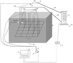 所述土壤孔隙率检测传感器1(141)、土壤孔隙率检测传感器2(142)、接地网(17)置于土壤箱(10)内,接地网外接引出端口1(181)、接地网外接引出端口2(182)、其他接地网外接引出端口(183)都半插在土壤箱(10)内;