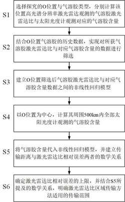 所述的激光雷达比区域传输方法包括以下步骤:(1)选择需要探究的O位置与气溶胶类型,以O位置为中心布置新型地基激光雷达网;分别计算在O位置,且同一时刻高光谱分辨率激光雷达观测的气溶胶激光雷达比与太阳光度计观测对应的气溶胶含量;