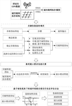 步骤四:根据关键性能指标和最小要求性能,结合道路韧性演变曲线,构建基于韧性视角下的城市道路交通运行状态评估方法;用时间序列中每个时刻道路韧性的损失来表征道路运行状态,从系统的角度分析交通状态的演变过程,识别拥堵扩散的临界阈值。