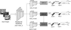 个基于全局参考注意力机制设计的模块、全局平均池化层GAP、卷积降维层Reduce和全连接层FC;将所有输入网络的图像的尺寸缩放成一致尺寸并输入到骨干网;通过骨干网和三个分支的残差层,得到三个不同的特征图。