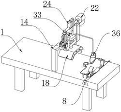 此时启动驱动电机(22),通过驱动电机(22)带动转轴(23)进行转动,进而带动安装架二(24)进行转动,由于连接板(25)设置在安装架二(24)远离转轴(23)的一端,因此当安装架二(24)转动时会带动连接板(25)周期性上下移动,进而带动安装架一(21)和安装板(17)周期性上下移动,进而带动滑块二(16)在滑座(15)内壁周期性上下滑动,进而带动压板一(18)和压板二(20)周期性上下移动;